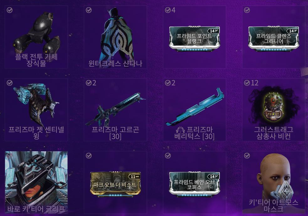 [워프레임] 프라임 리서전스 바르지아 12월 22일 ~ 2022년 1월 5일까지 상점 상품 (0) | 2021.12.29 |