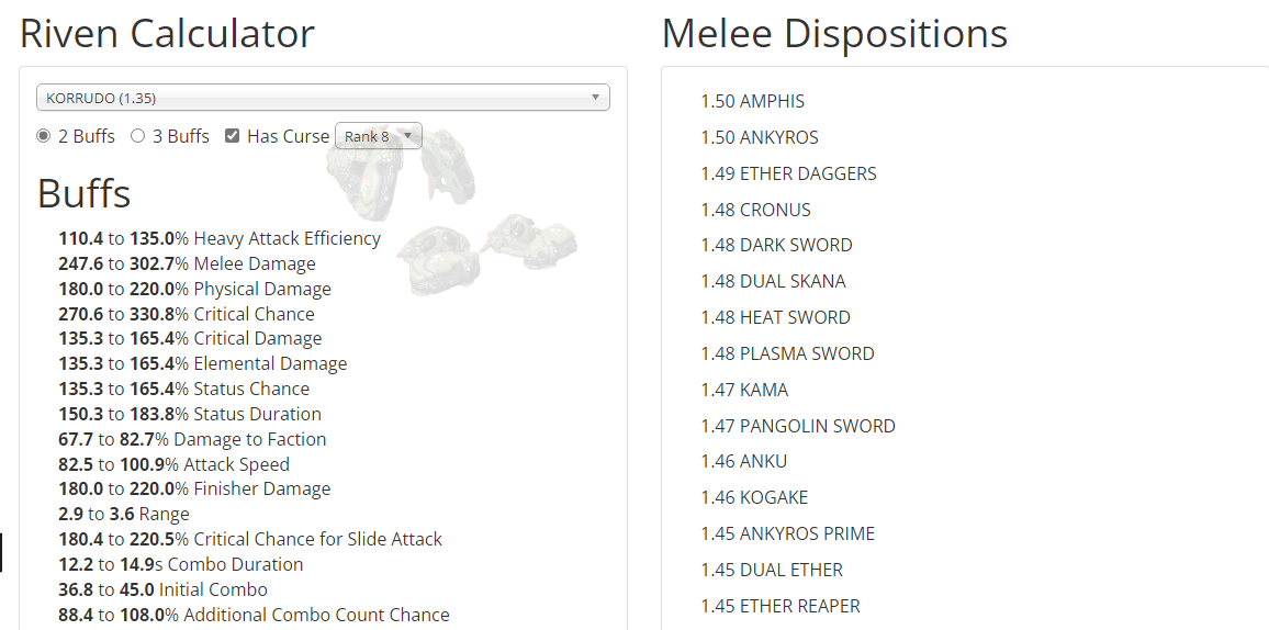 You can calculate: | Real weapon dps | Efficiency of Riven mods | Enemy Armor
