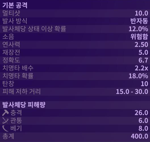 재장전 속도는 스트런이 가장 빠르나 모든 능력치면에서 떨어집니다.